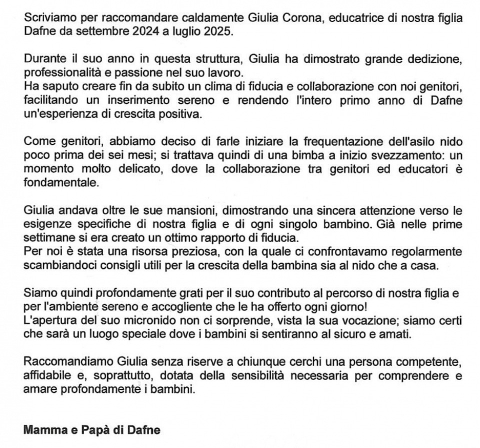 Mi chiamo Giulia e sono laureata in scienze dell’educazione.